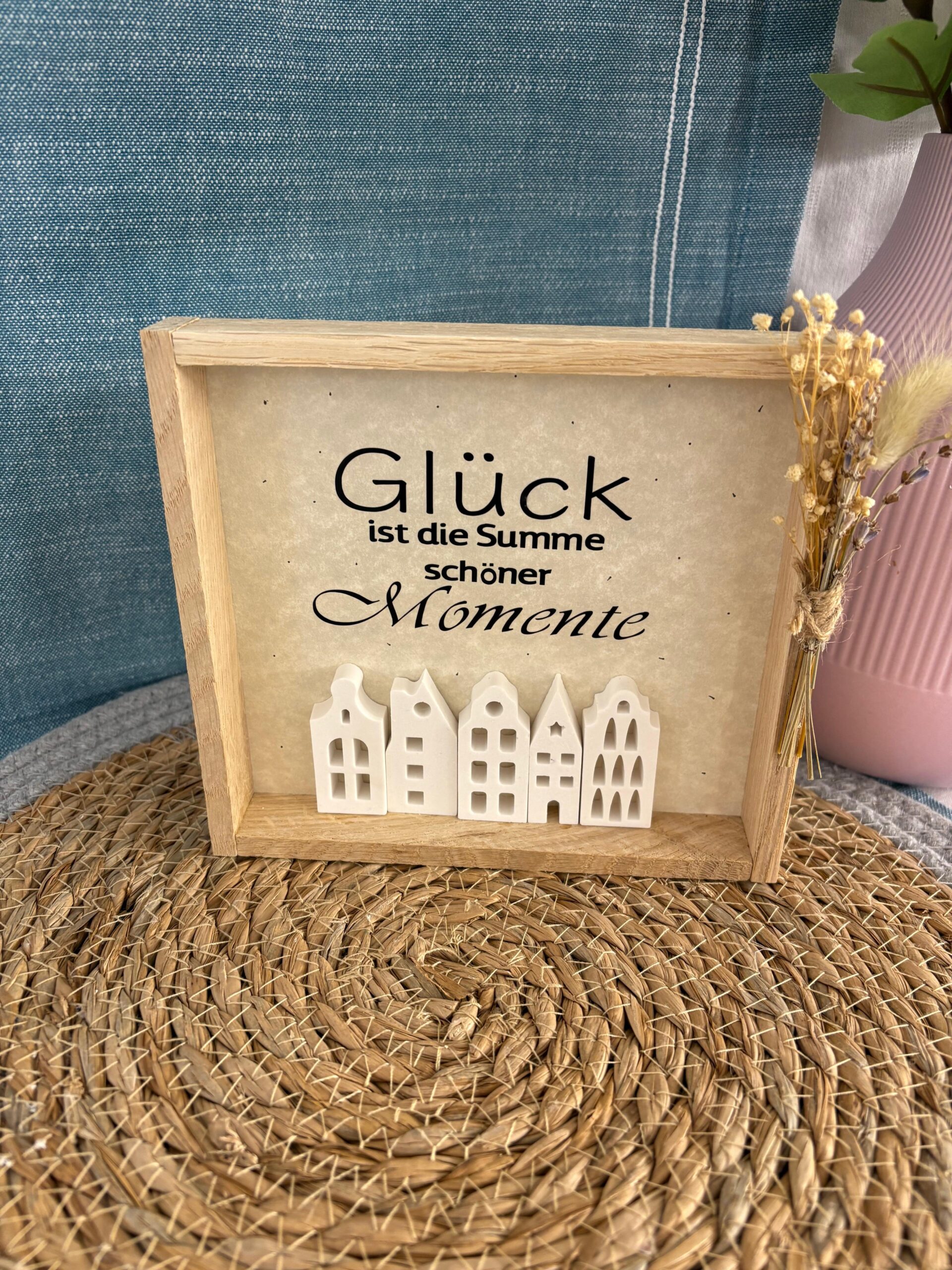 - Schriftzug: „Glück ist die Summe schöner Momente“