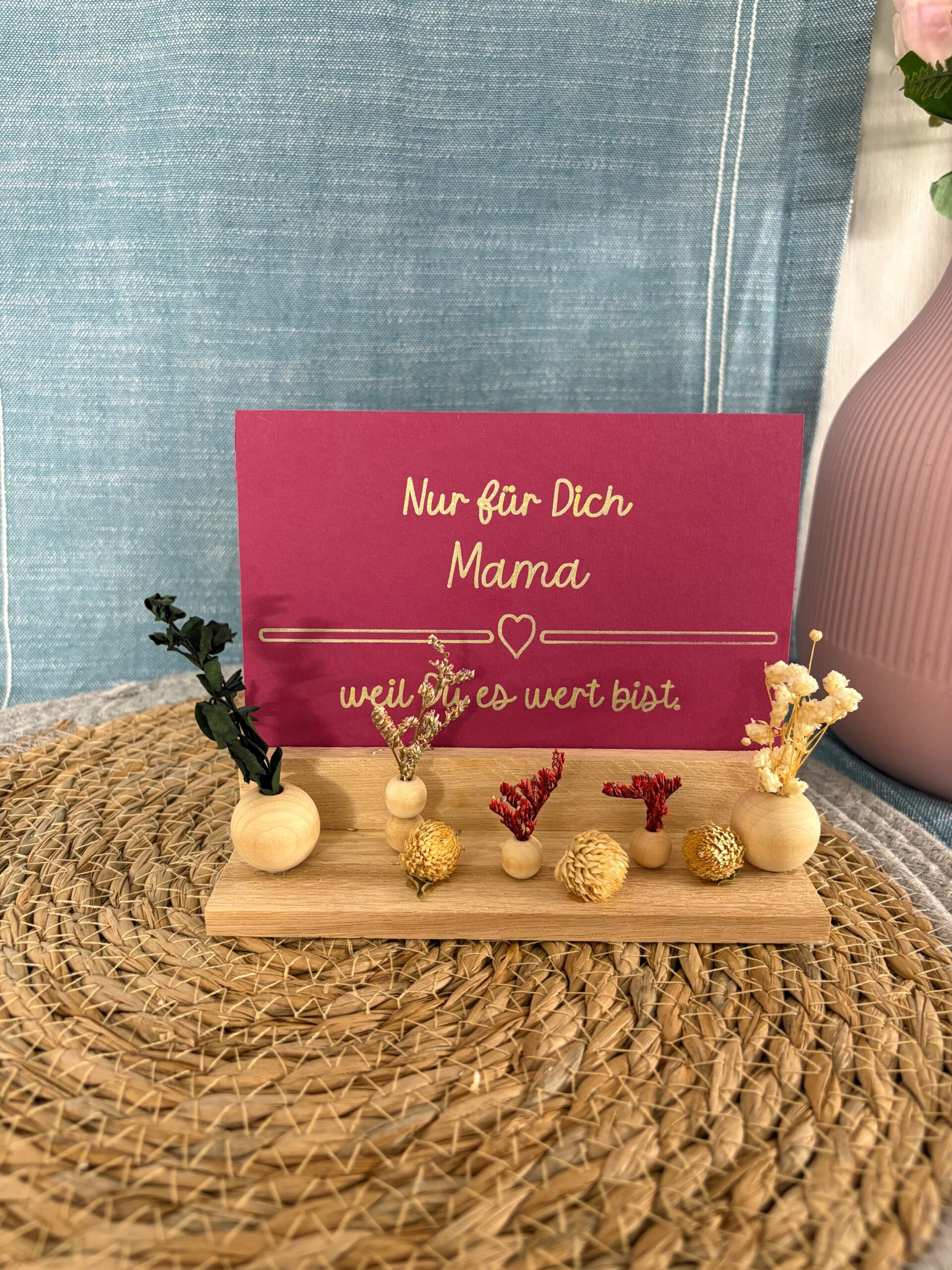 Ob als Geschenk für Mama, Oma, Freundin oder einfach als dekoratives Highlight für das eigene Zuhause – der Aufsteller passt perfekt auf Regal, Fensterbank oder Tisch und bringt eine warme, persönliche Note in jeden Raum.