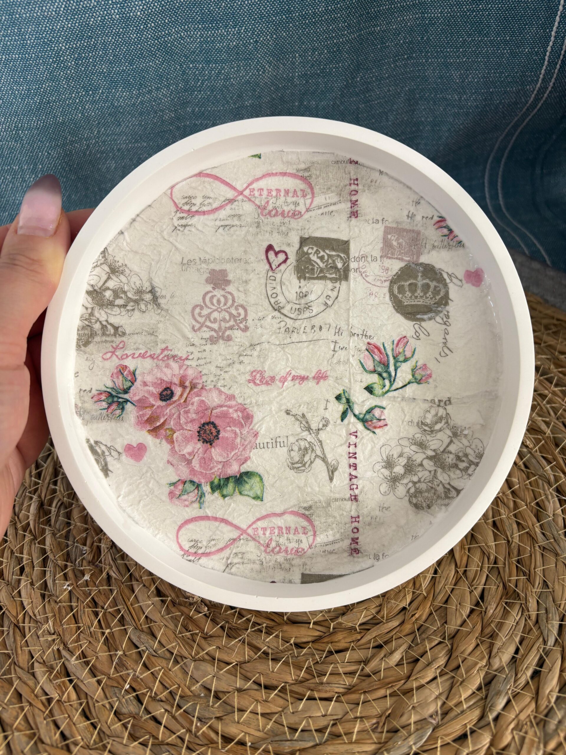 - Verziert mit Serviettentechnik