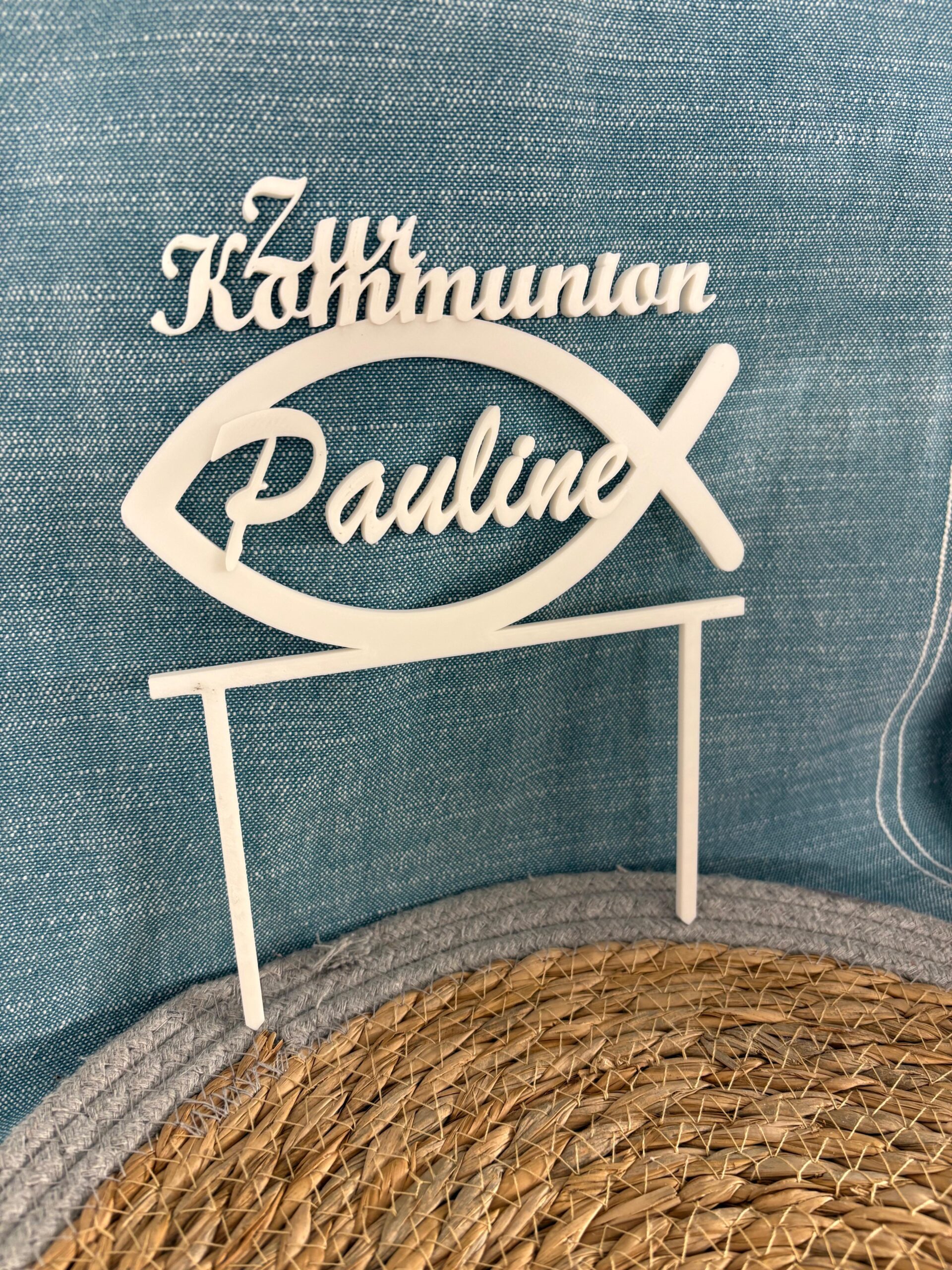 Deko Tortenaufsteller „Fisch zur Kommunion“ Individualisierbar, Personalisierbar