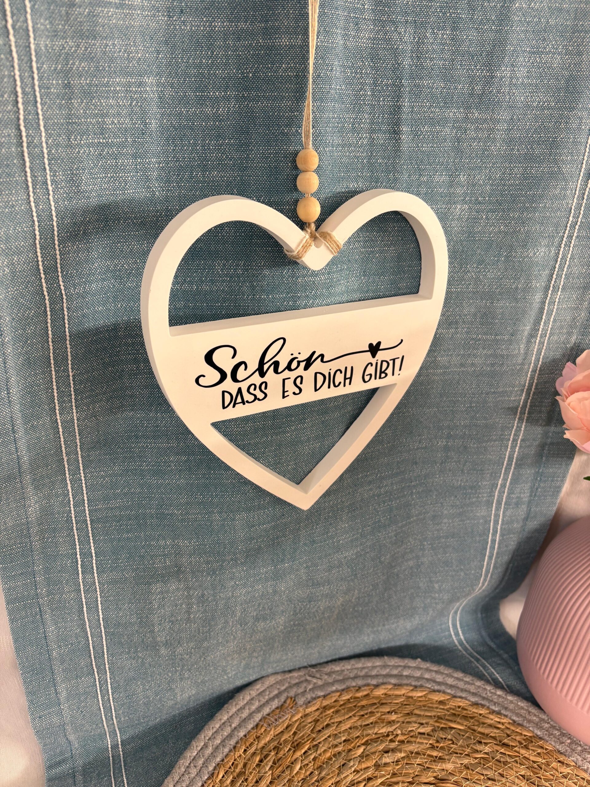 Dieses stilvolle Herz aus Raysin ist eine liebevolle Dekoration mit besonderer Botschaft. Der Schriftzug „Schön, dass es dich gibt!“ macht den Anhänger zu einem emotionalen Geschenk für Menschen, die einem besonders am Herzen liegen.