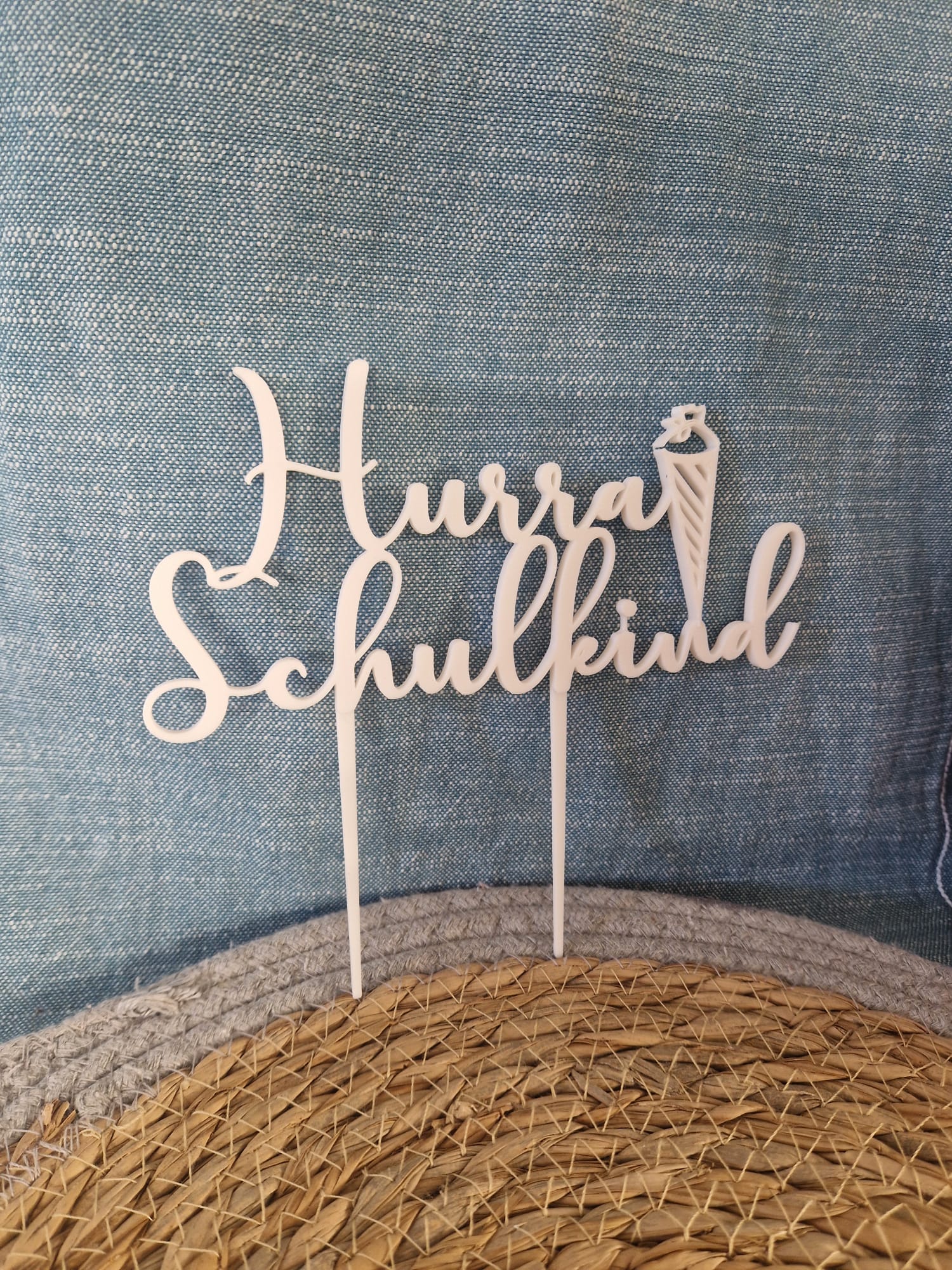 • Kuchenaufsteller mit Schriftzug „Hurra Schulkind“